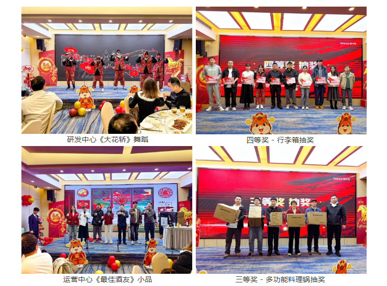 筆記本電腦、手機、平板、行李箱等豐厚大獎輪番抽取,幸運兒接連誕生,供應商伙伴的暖心贊助更添驚喜,整場年會沉浸在溫馨、歡樂、熱烈的新春氛圍中。